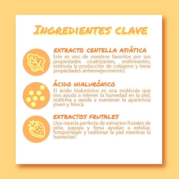 Este bloqueador no solo nos protegerá si no también aporta nutrientes que necesitamos. Contiene extractos frutales que ayudan con la fotoprotección y con la regeneración celular. La sensación aterciopelada te dejará encantad@!