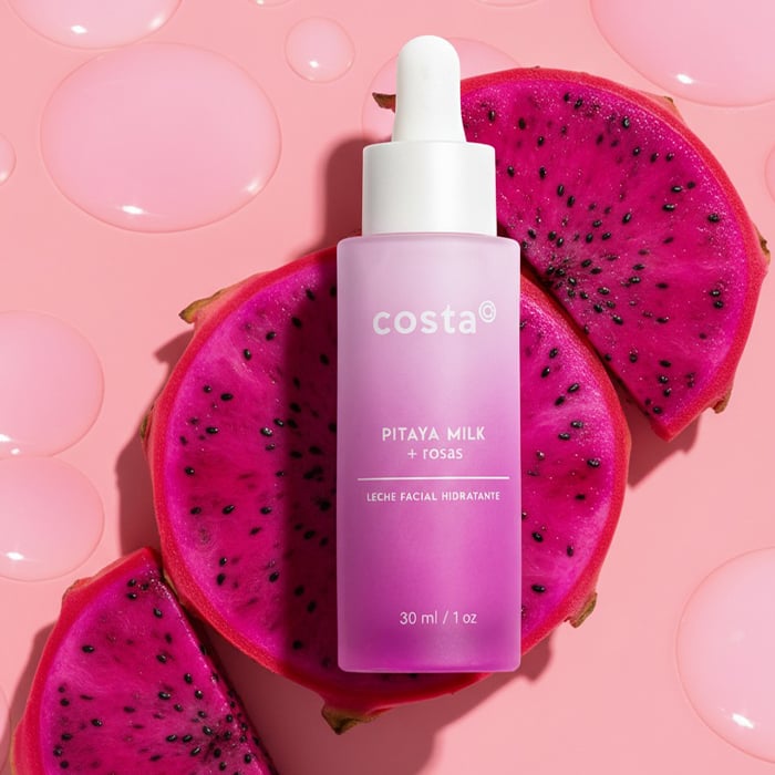 La leche de pitaya es perfecta para todas las pieles, pero sobre todo las pieles maduras que han sufrido de coloración por los años o el daño del sol, ya que su función principal es ayudar a emparejar el tono de la piel.